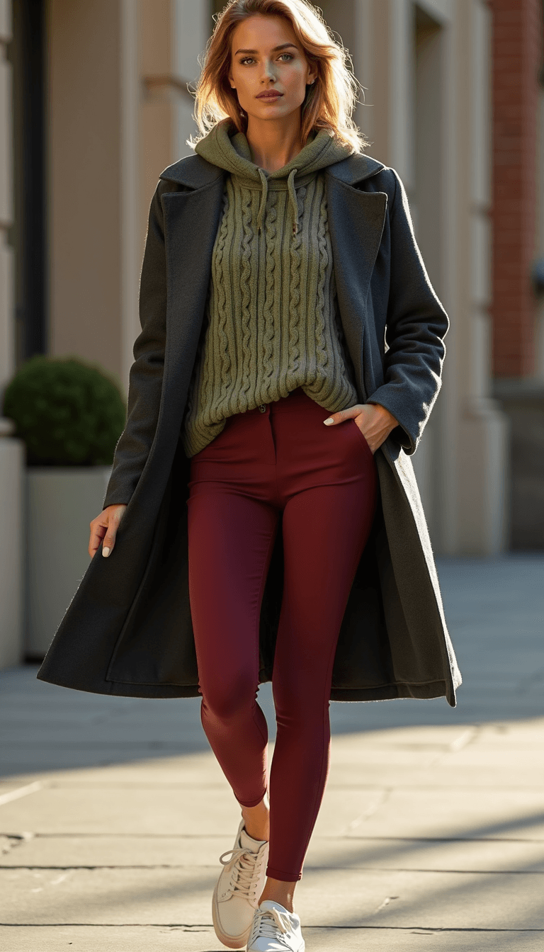 Leggings are often considered the backbone of stylish casual wear outfits. When combined with a structured coat and a soft hoodie, they provide the perfect balance. This ensemble showcases the current direction of fashion inspiration, where women prioritize versatility while ensuring gear that feels good to wear. Whether you’re strolling through a park or catching up with friends, this look ensures you make a fashion statement without sacrificing comfort.