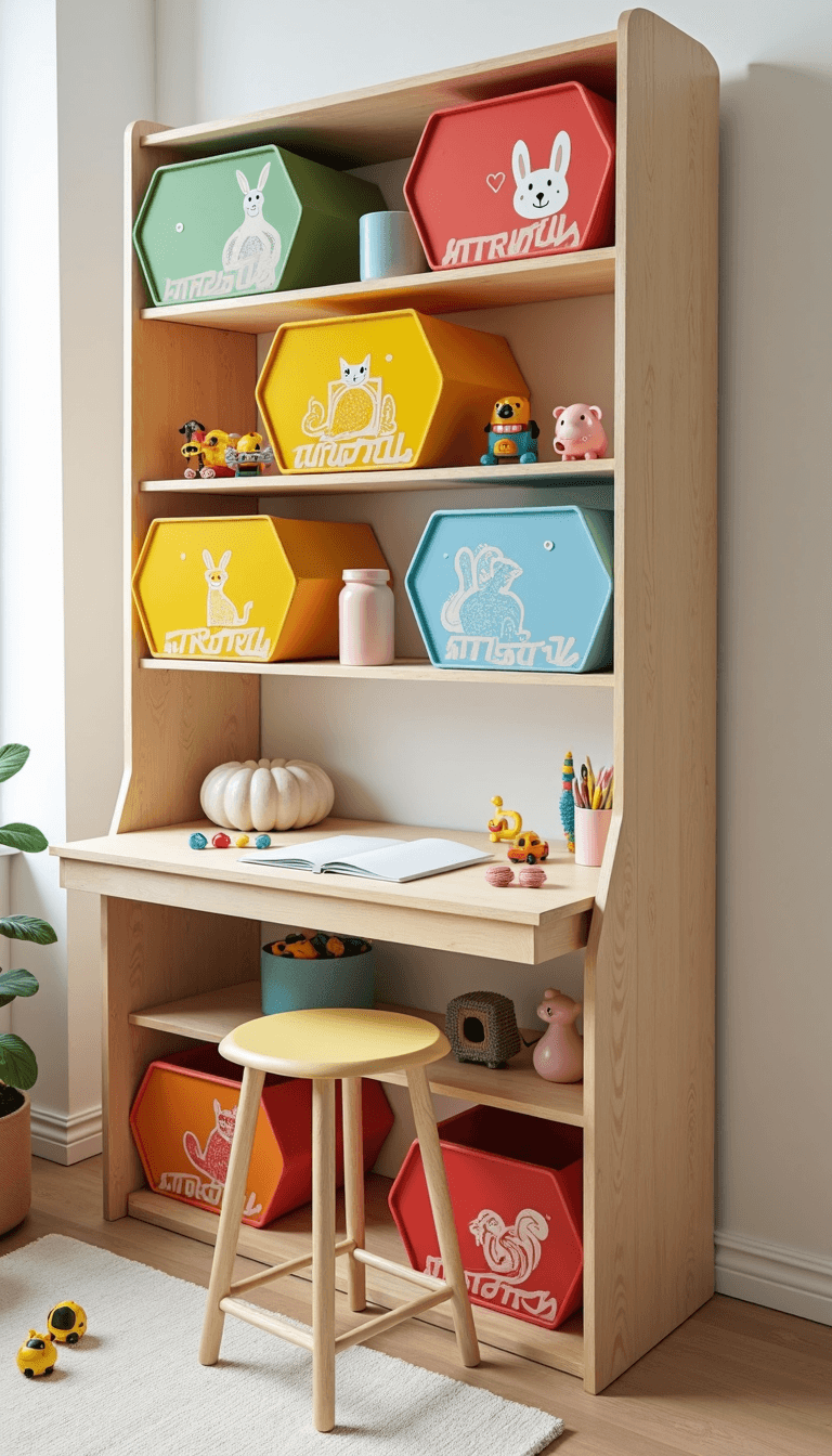 Introduce storage bins and labels for toys, along with a toy rotation system to reduce clutter. Encourage kids to learn cleaning up through fun playtime activities, which helps develop their organizational skills.