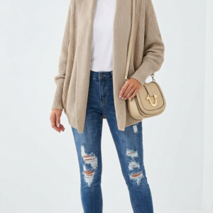 or oversized knit, introduces visual interest while keeping the outfit casual and chic.